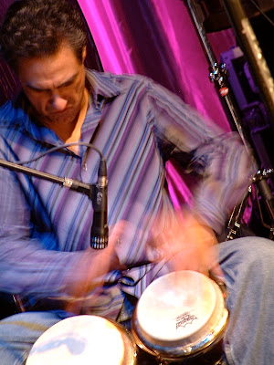 The second set was on fire with stuff from the new CD. Some of Jerry's pals from the Danny Gans show, drummer Raphael and sax cat Freddie, and their posse (below) came to hang, and dug it big time.
