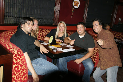 The crowd was better last night. More people showed up, and they were way into it. Band was smokin'. It was a good hang. Thanks to Donny Osmond's son Jeremy and his peeps (below) for comin'. Very nice to meet you.